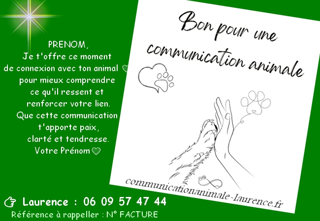 ✨ Formée à la communication animale intuitive avec Laila Del Monte, je propose des bons cadeaux personnalisés pour permettre à vos proches de vivre cette expérience unique, à distance, dans le respect de chaque être.